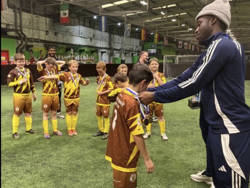 FC Halifax Town players David Kawa and Thierry Latty-Fairweather were on hand to watch the knockout stage and present the finalists with medals and the trophy.